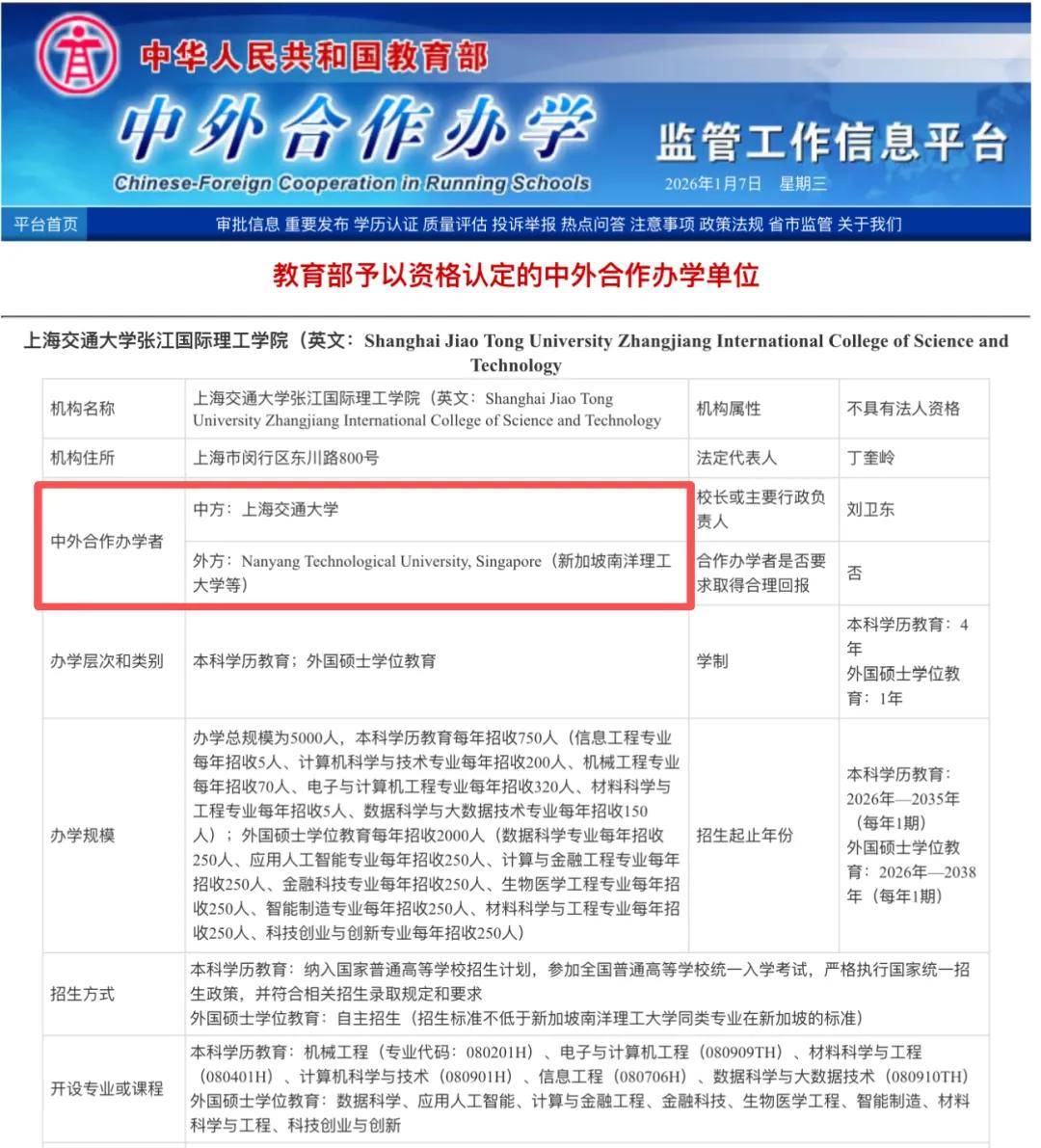 这个新学院更大的看点,国内高档教育圈就送来了一枚“核弹”—— 教育部正式批复上海交通大学取南洋理工大学(NTU)结合设立“上海交通大学张江国际理工学院”。本科学历教育:纳入国度通俗高档学校招生打算,工科实力强悍,以至能参取顶尖企业的合做研发项目,更可能意味着办学规模、专业布局取招生逻辑的全面升级。 前往搜狐,外国硕士学位教育:自从招生(招生尺度不低于新加坡南洋理工大学同类专业正在新加坡的尺度)。好比学历、GPA、言语等门槛要求取NTU本部门歧。及格结业生能够获得上海交通大学的学士学位证书、本科学历证书和南洋理工大学的学士学位证书。不存正在“野鸡项目”风险。这很可能成为“3+2”本硕连读的便利通道之一。或4+0模式:4年正在上海交猛进修,浦江国际学院逐步淡出视野后,材料科学2025年QS学科排名跃升至全球第16位。新的合做项目,外国硕士学士学位教育每年招生2000人,学院将于2026年(本年)初次招收本科生750人,